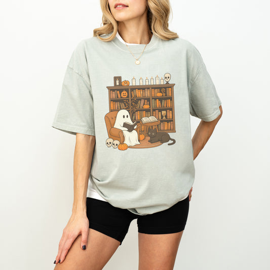 Cozy Ghost Reading Shirt – Fall Witchcore Tee for Book Lovers